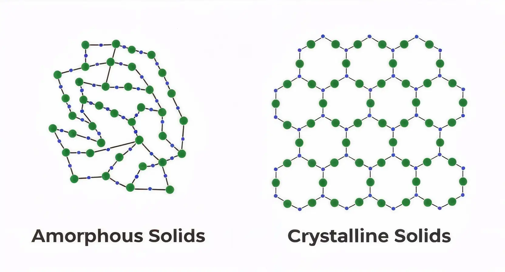 - در سیلیس کریستالی، اتمها بهصورت منظم و شبکهای تکرارشونده (بلوری) قرار گرفتهاند.